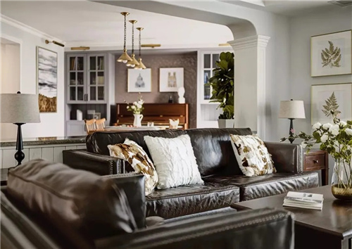 高级灰墙面具有很好的包容性,客厅气质大气而又内敛。