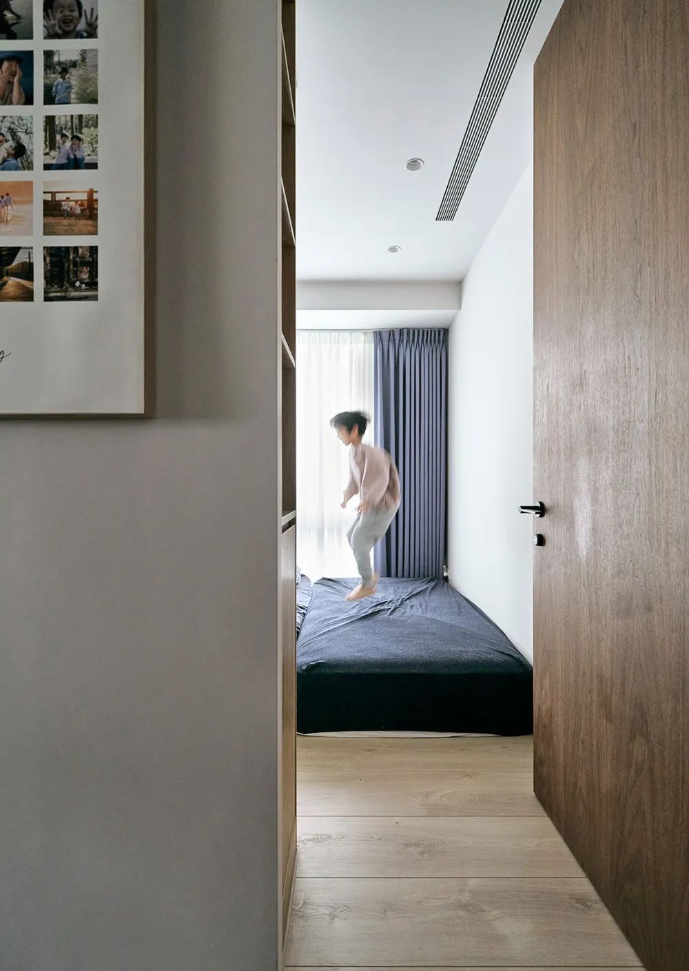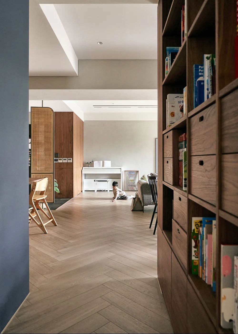 原本想以【孩子玩乐】空间为方向,最大程度地放大游戏区。但设计中发现,客厅与游戏区有所重合,反而能有更高的自由度,也方便随着孩子不同阶段的成长进行微调。